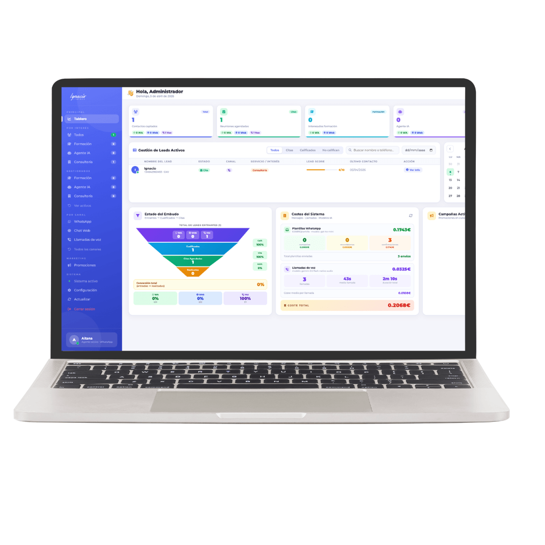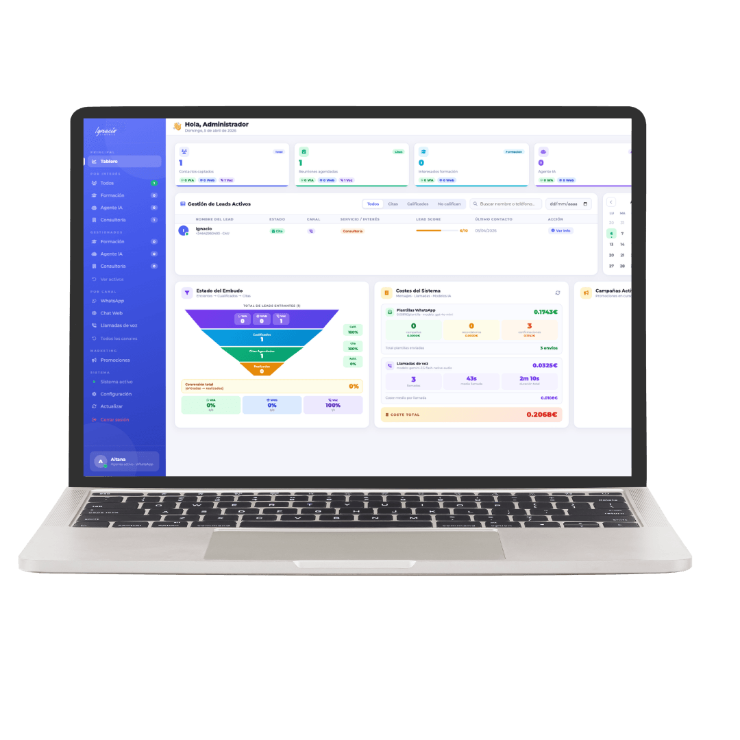 Leads, conversaciones, presupuestos, citas y estados comerciales en un solo lugar. Visibilidad total, control real y cero dependencia del caos diario.